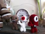 Here's a picture of a couple of my little Sackboy dolls, the brown one id for my cousin, the cyclops is one I made for my son and the white one is hanging in my car. Poor little dude makes me smile even though he looks a bit sad, does that make me mean?